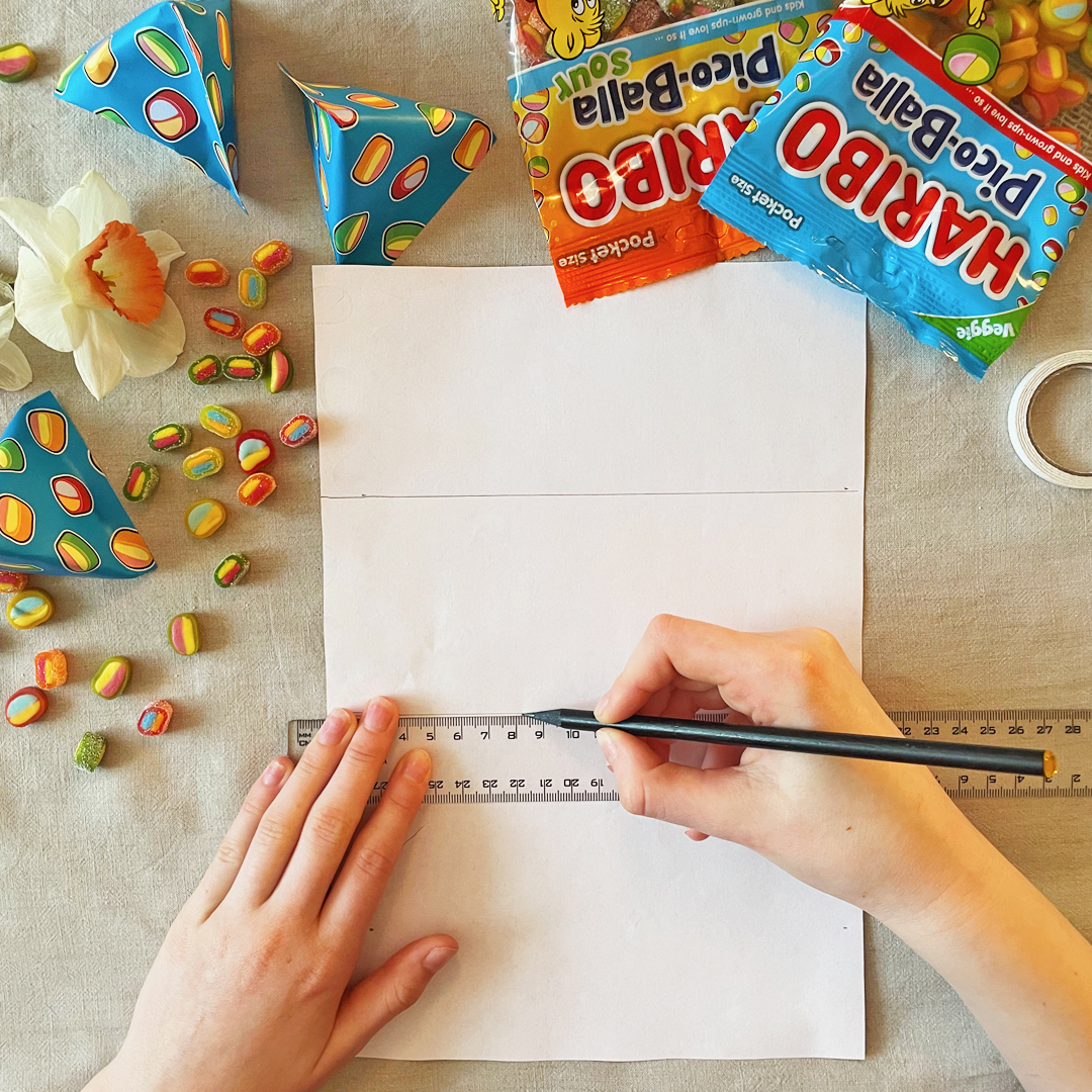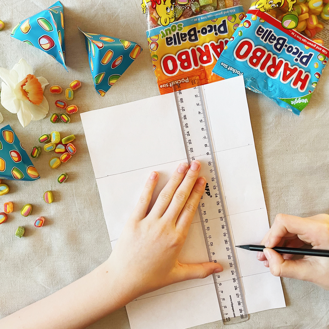 3. Odstřihneme bílé okraje a narýsujeme si obdélníky o rozměru 8x15 cm.
